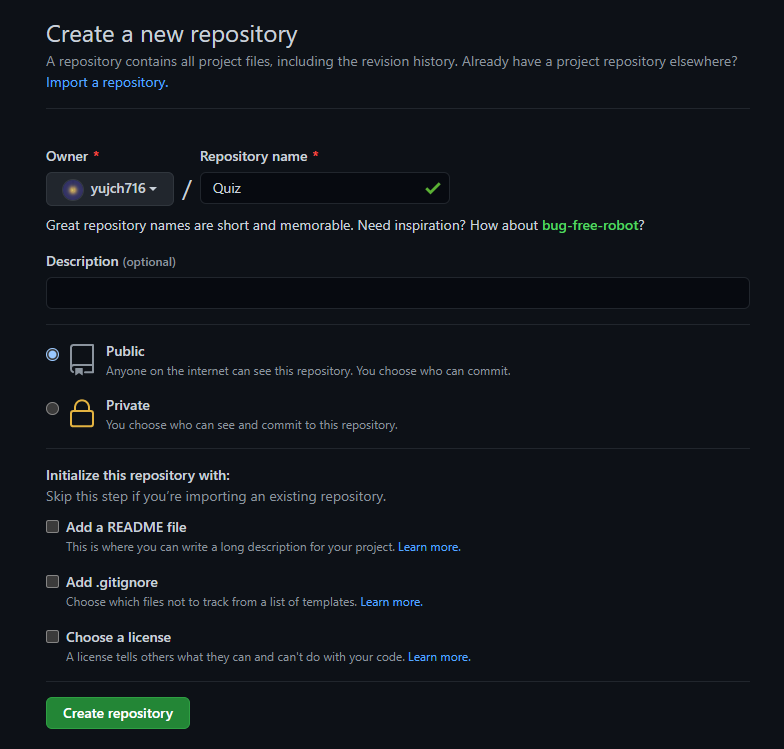 2. GitHub์ ์ ์ ์ฅ์๋ฅผ ์์ฑํ๋ค.