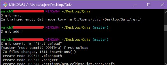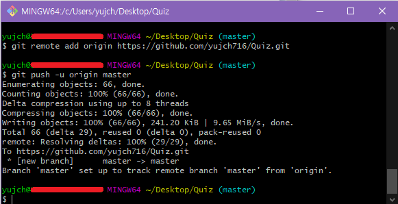 git remote add origin {์ 3๋ฒ์์ ์ ์ฅํ ๊นํ๋ธ ์ ์ฅ์ ์ฃผ์}