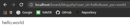 echo $_POST['user_id'].' , '.$_POST['user_pw'];
