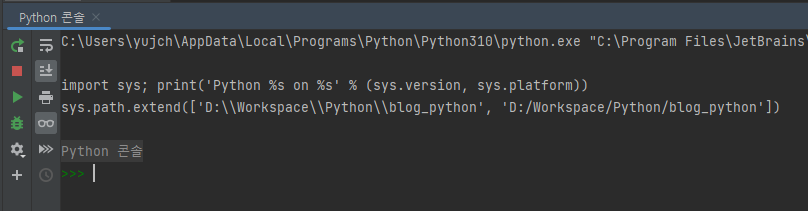 - ํ๋จ์ 'Python ์ฝ์' ํด๋ฆญ