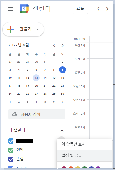 calendar_id 확인 방법 1)