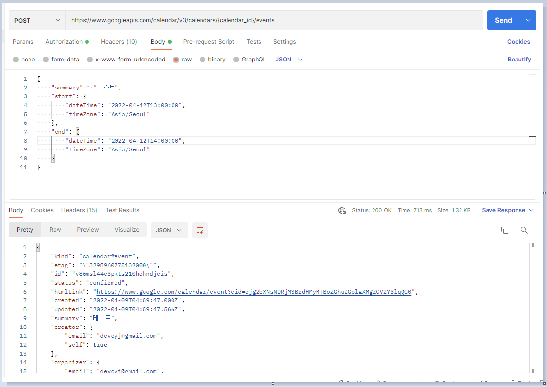 {calendar_id} 는 이벤트를 생성할 캘린더의 id